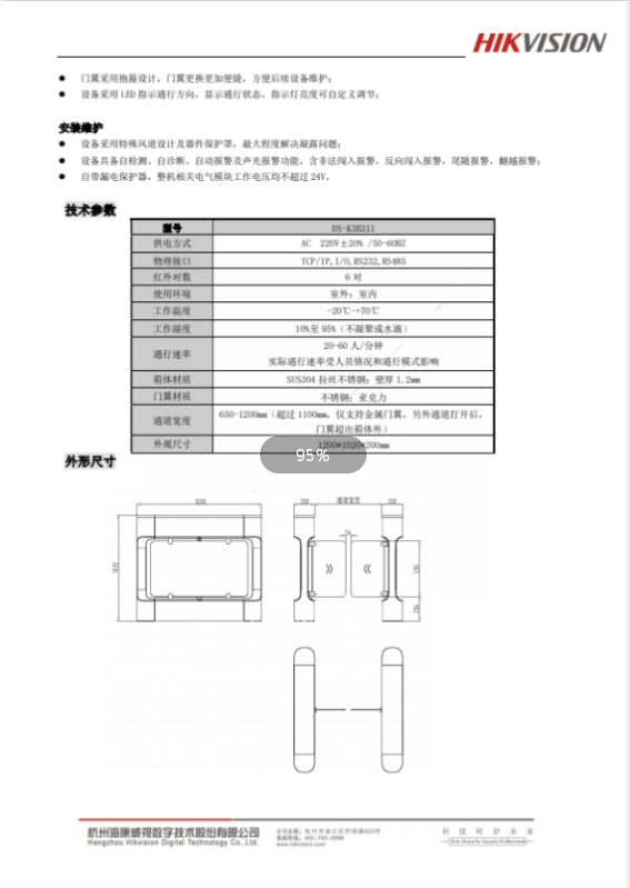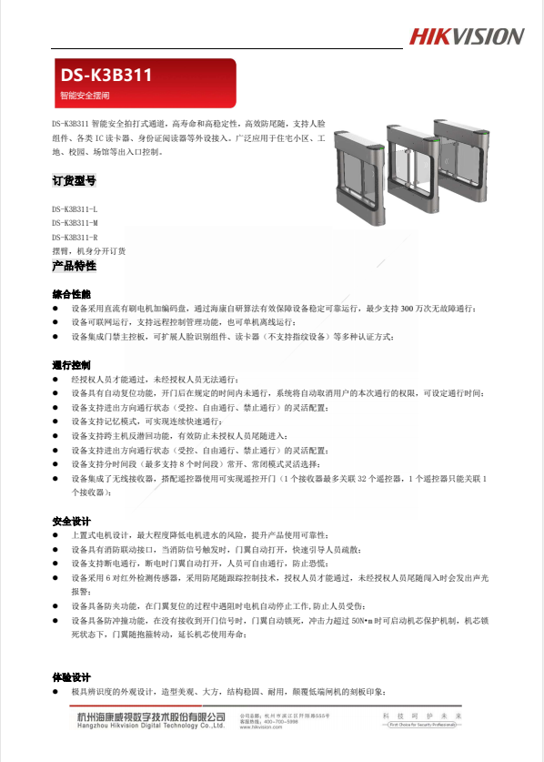 DS-K3B311智能安全摆闸 自营
